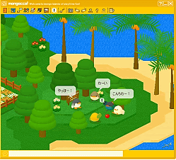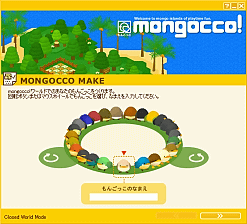 もんご諸島に住む、もんごっこになって、おしゃべりを楽しむのはもちろん、島を駆け回ったり、はねたり、海を泳いだり、ボール遊びや雪合戦をしたり、おこづかいを貯めてアイテムを集めたり、時には「がいちゅう」と戦ったり。島での生活に決められた目的はありません。「mongocco!」はゲームではなく、それぞれのスタイルで島の生活を楽しむことが出来るコミュニケーションソフトなのです。